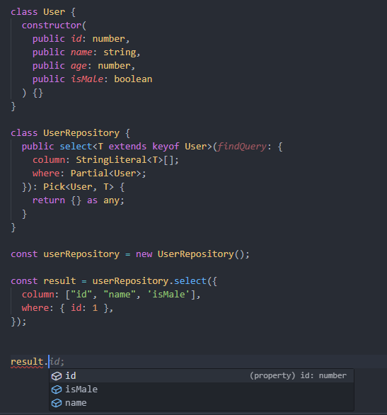 오! 이렇게 TypeORM은 이루어내지 못했던 제대로 된 타입 추론을 해낼 수 있었다.