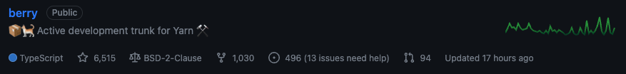 살짝의 말장난인데요, yarn berry는 zero-install을 구현하기 위해 이 라이브러리 의존성을 github에 소스코드와 같이 올리는 전략을 취하고 있습니다.