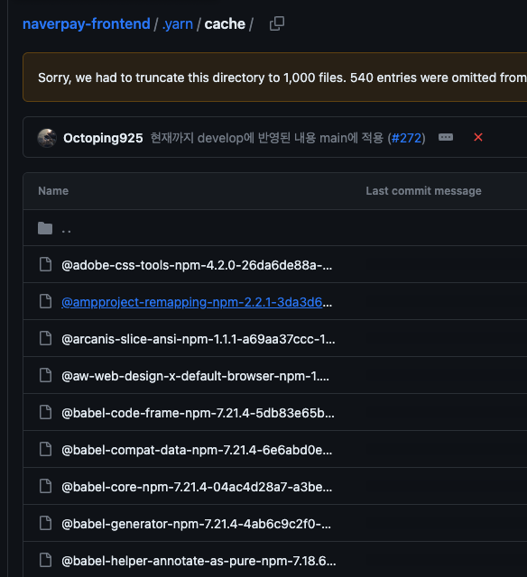 근데 이건 다시 생각하면.. 커밋할 때 의존성이 바뀌었다면 PR을 올릴 때 같이 올라오게 된다는 말입니다.